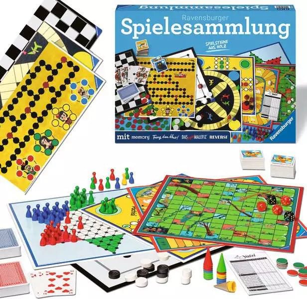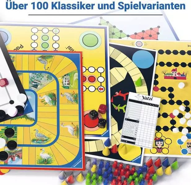 In dieser umfangreichen Sammlung sind viele bekannte Spiele enthalten, die Generationen von Spielefans begeistern: memory®, Fang den Hut®, Pachisi®, Yatzi®, Gänsespiel, Leiterspiel, Dame, Mühle, Halma, Reversi®, Romméund viele weitere Varianten. Die klaren Spielregeln und die große Auswahl sorgen dafür, dass immer wieder neue Spielideen entstehen.