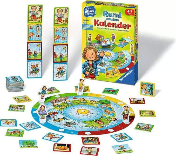Beim Lernspiel Rund um den Kalender gehen Kinder ab 4 Jahren auf eine Reise durch die Jahreszeiten. Sie entdecken, wann Vögel ihre Jungen bekommen, zu welcher Zeit Mütze und Schal gebraucht werden und was man im Frühling, Sommer, Herbst oder Winter unternehmen kann. Alltagssituationen und Naturbeobachtungen werden spielerisch der passenden Jahreszeit zugeordnet.