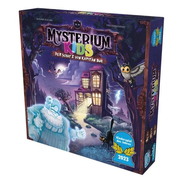 Mysterium Kids Der Schatz von Kapitän Buh ist ein liebevoll gestaltetes kooperatives Spiel, bei dem Kinder gemeinsam einen geheimnisvollen Schatz suchen. Ziel ist es, den Schatz von Kapitän Buh zu finden, bevor der Mond untergeht und die Nacht endet. Dabei arbeiten alle Spieler zusammen und gewinnen oder verlieren nur als Team.