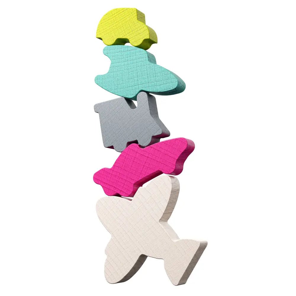 Spannendes Stapelspiel aus Holz mit 5 Fahrzeug-Elementen
