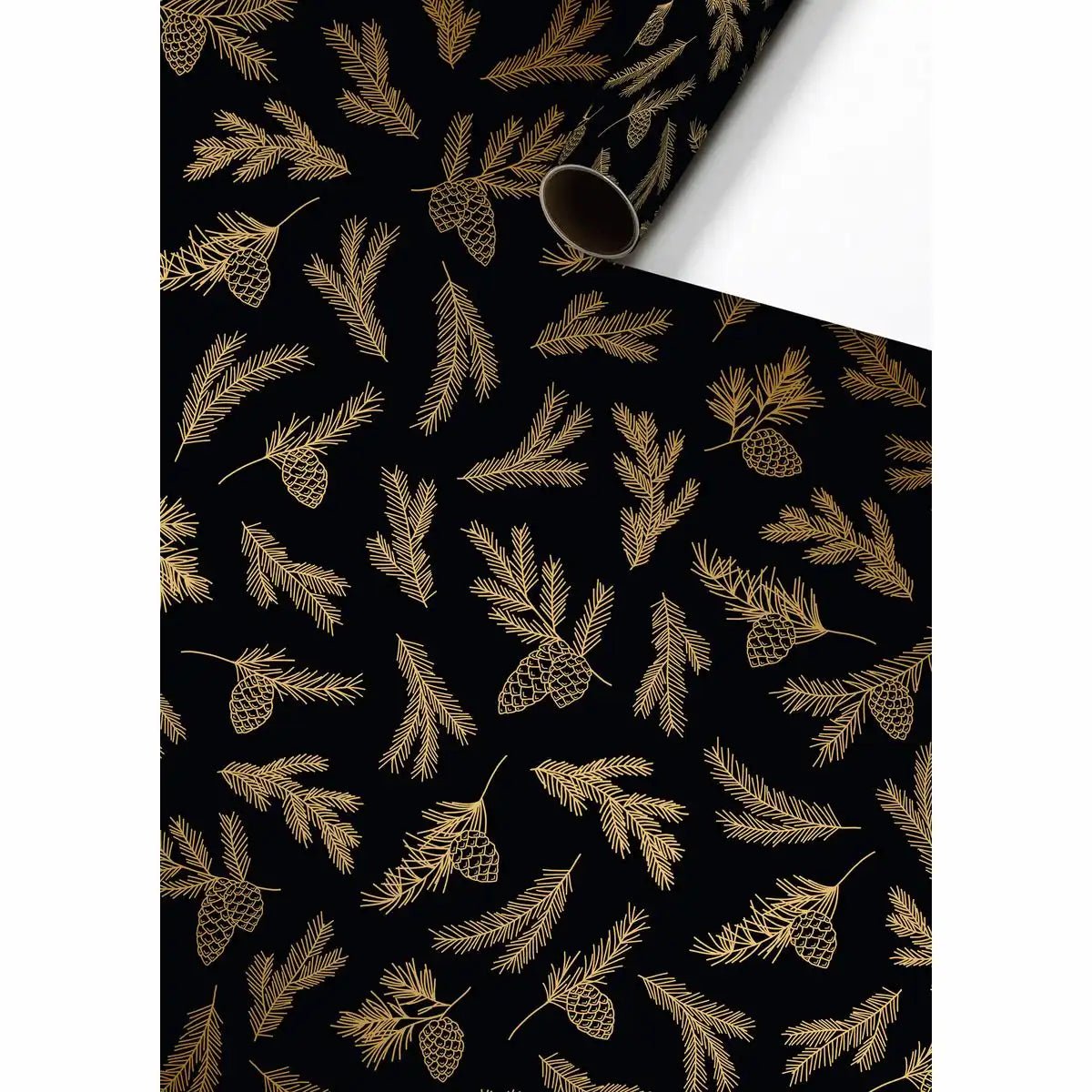 Das STEWO Geschenkpapier Mariola verleiht jedem Geschenk eine festliche und stilvolle Note. Das edle Design in schwarz mit goldenen Tannenzweigen und Zapfen macht es besonders für Weihnachten und elegante Anlässe perfekt geeignet.
