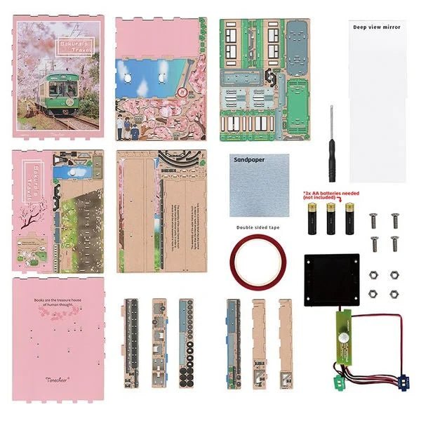 Tonecheer Sakura’s Travel – 3D Holz-Buchstütze & Diorama mit LED-Licht und Kirschblüten-Design